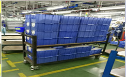 每臺料車裝20盒料,按4盒×5層規格排放,預設計料車尺寸為:L1350×W650×1500(mm)